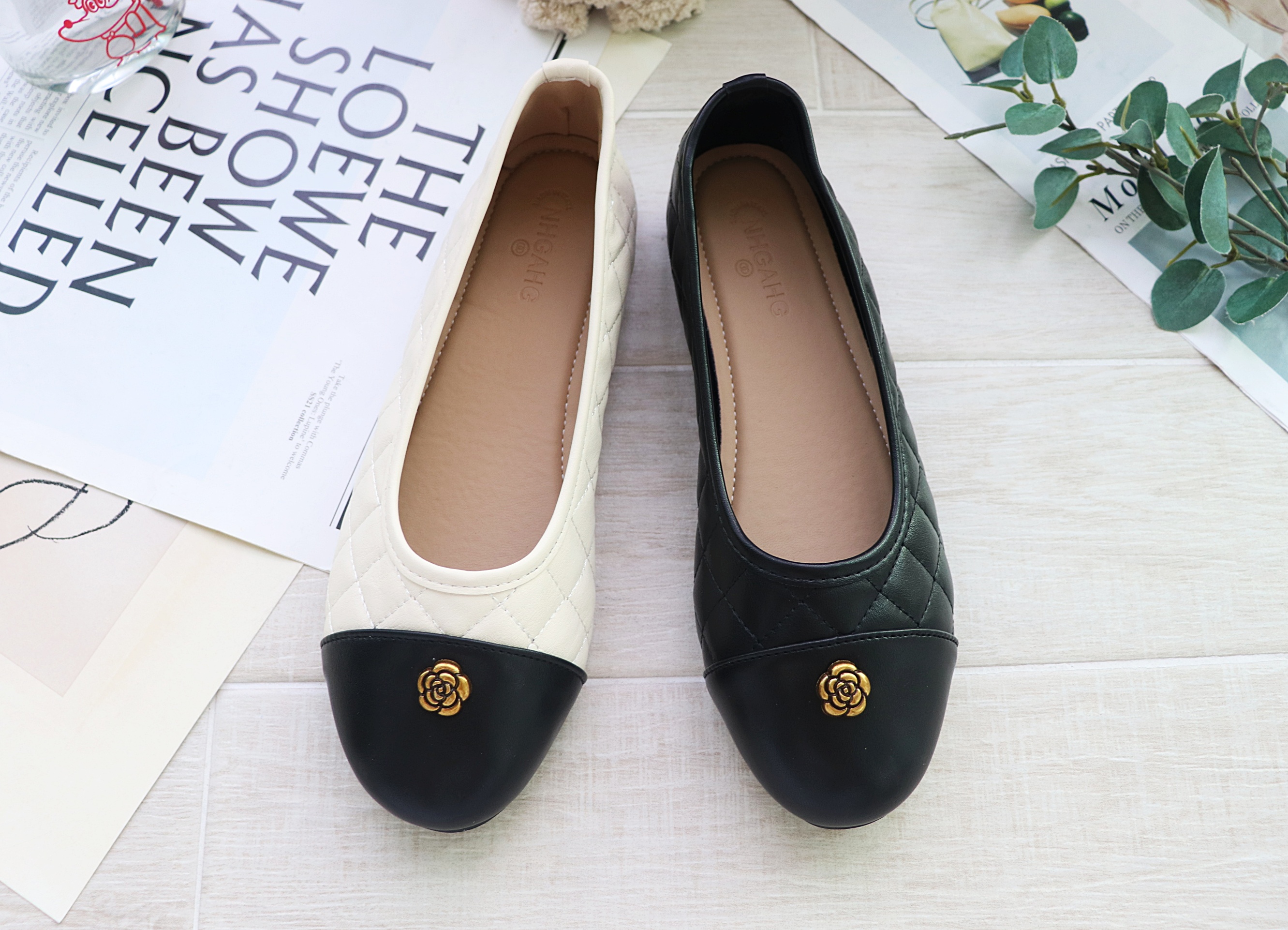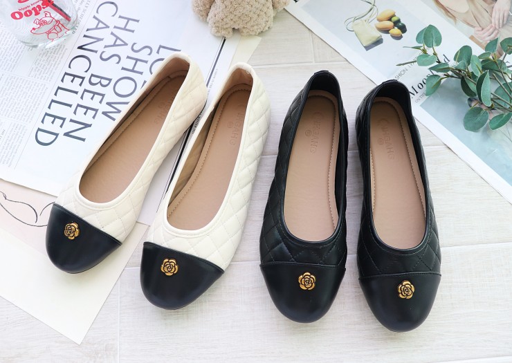 꽃 장식누빔 콤비 플랫단화