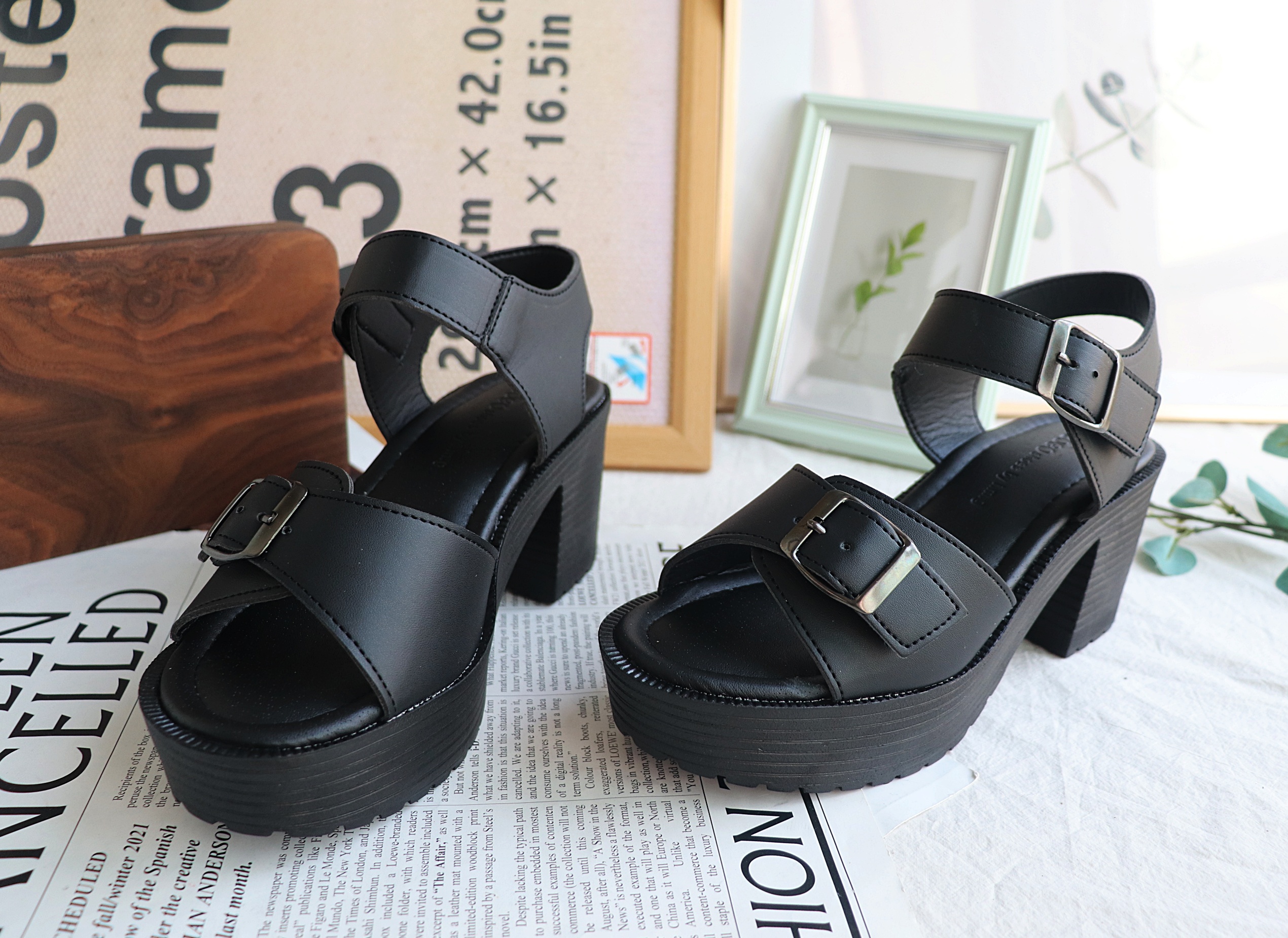 국산 소)7센티 통굽 벨트 샌들