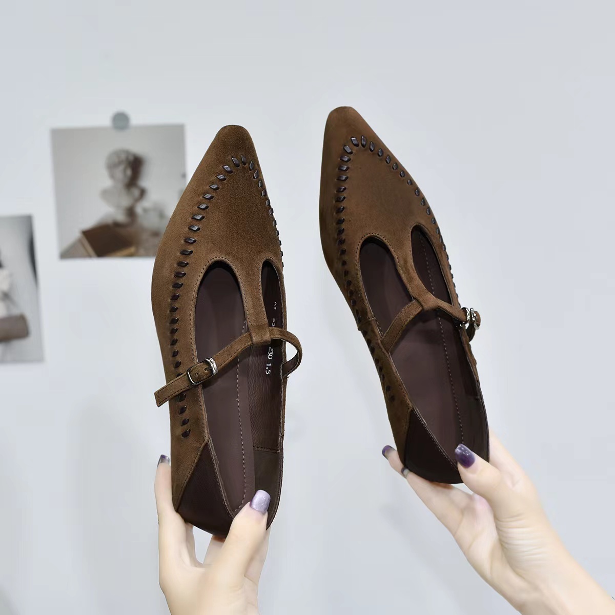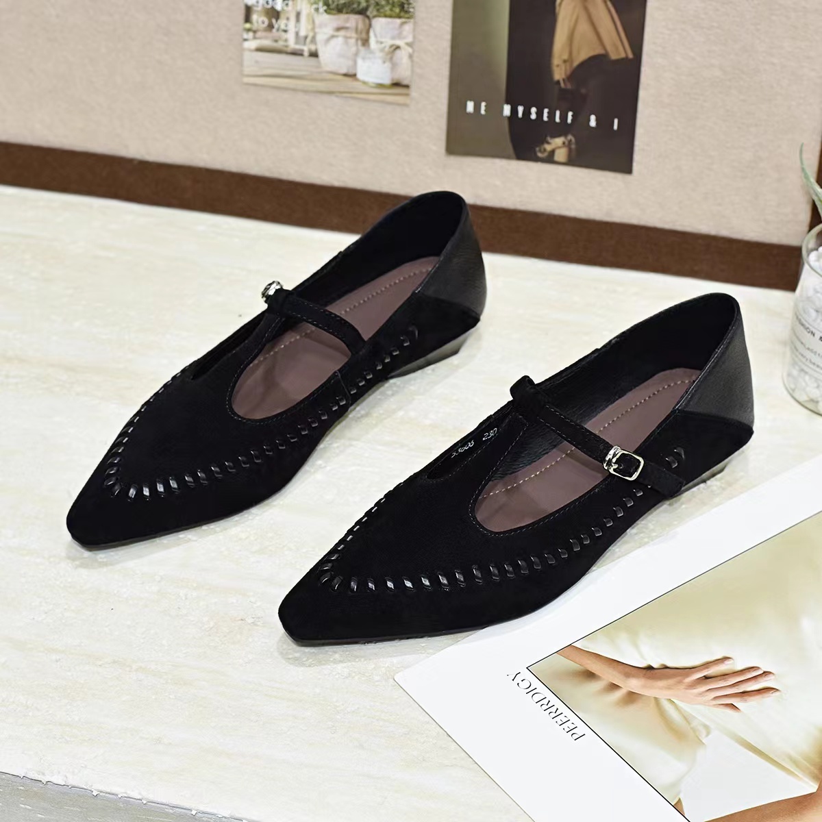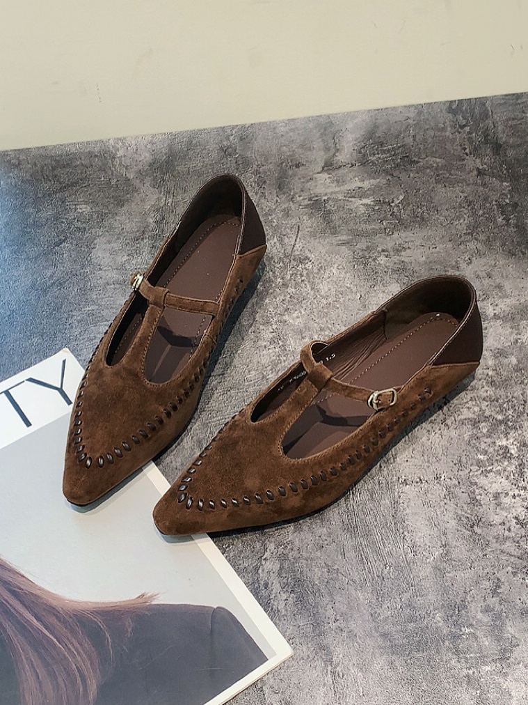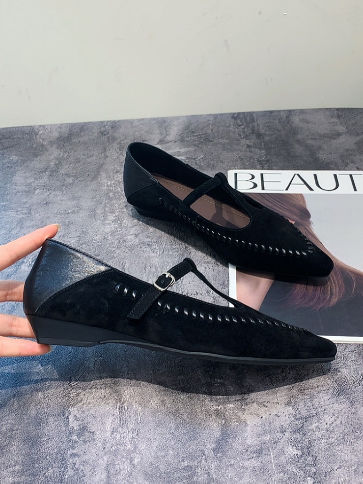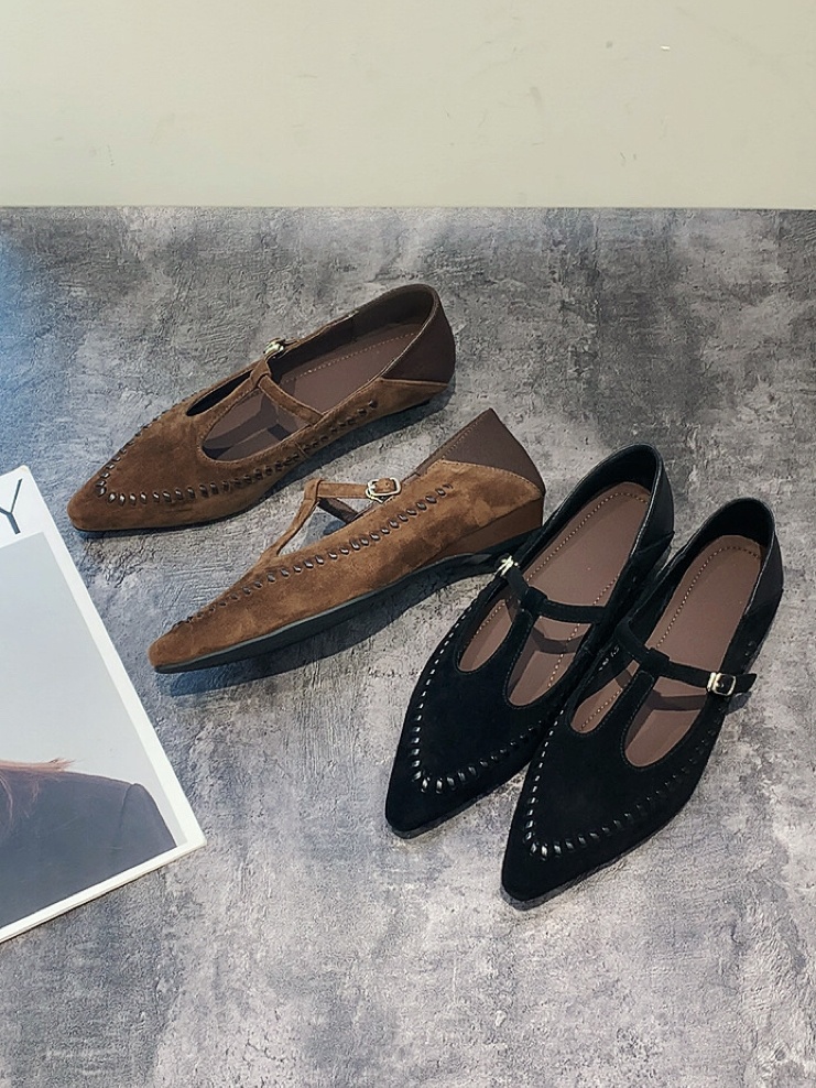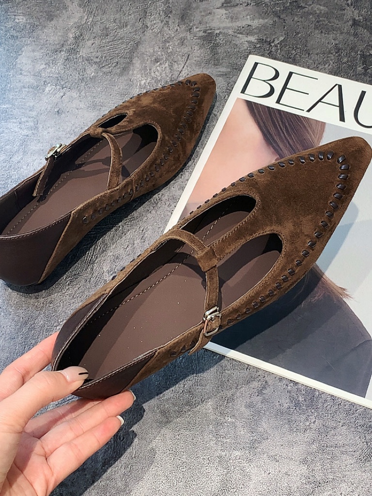 여성 소가죽 스웨이드 플랫 슈즈 로퍼 단화