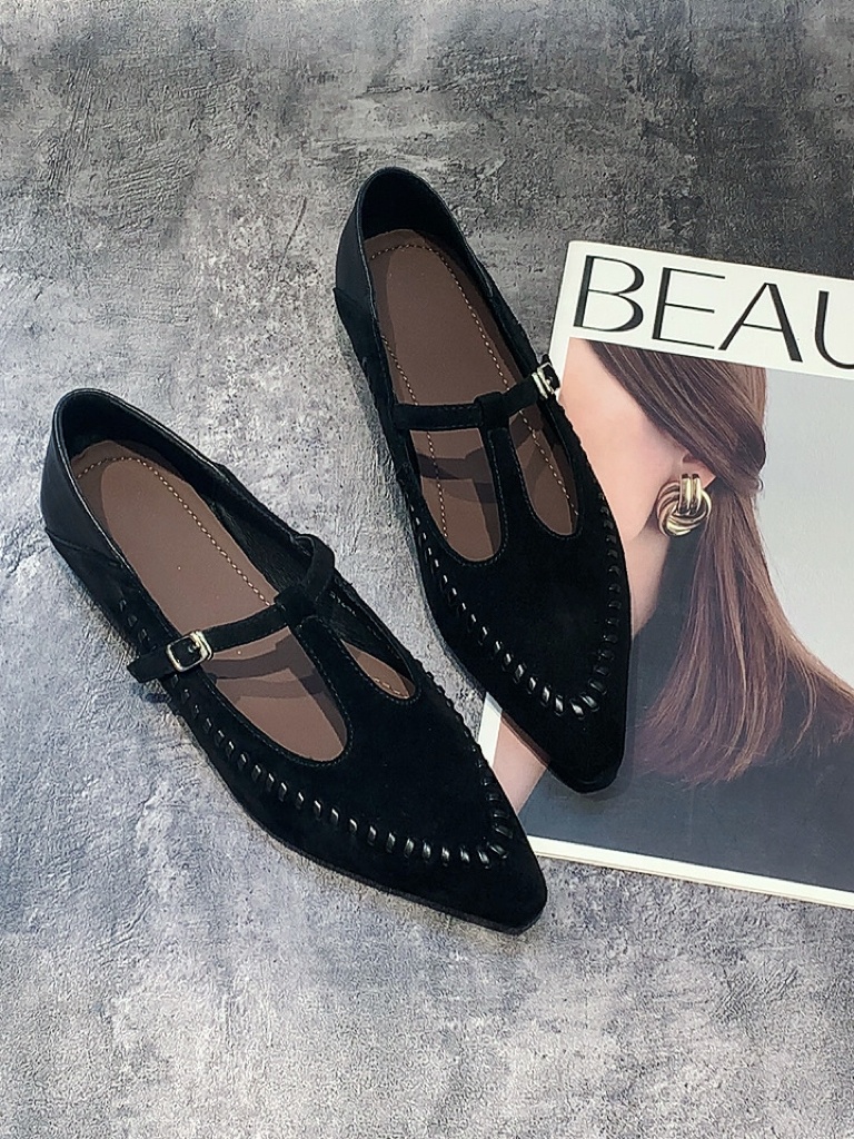 발편한 소가죽 진주 포인트 플랫 슈즈 로퍼