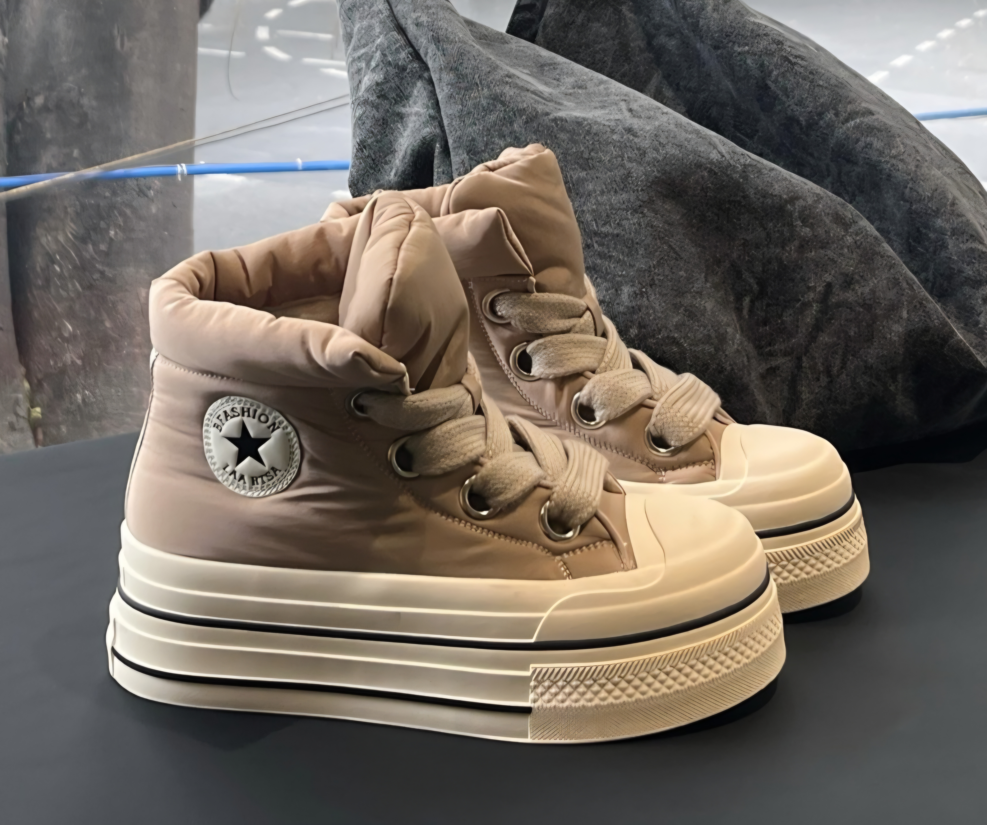 패딩 하이탑 키높이 스니커즈 운동화