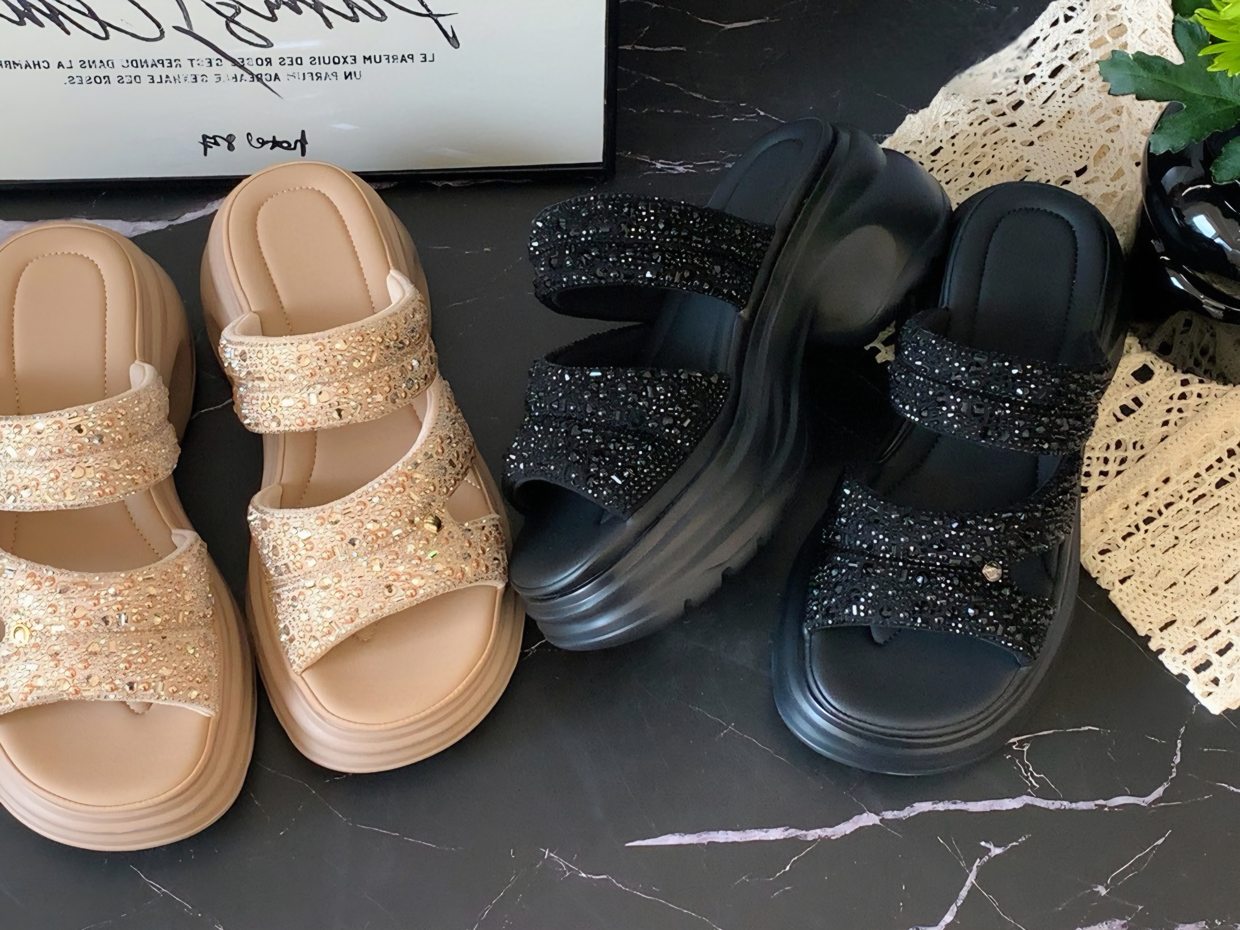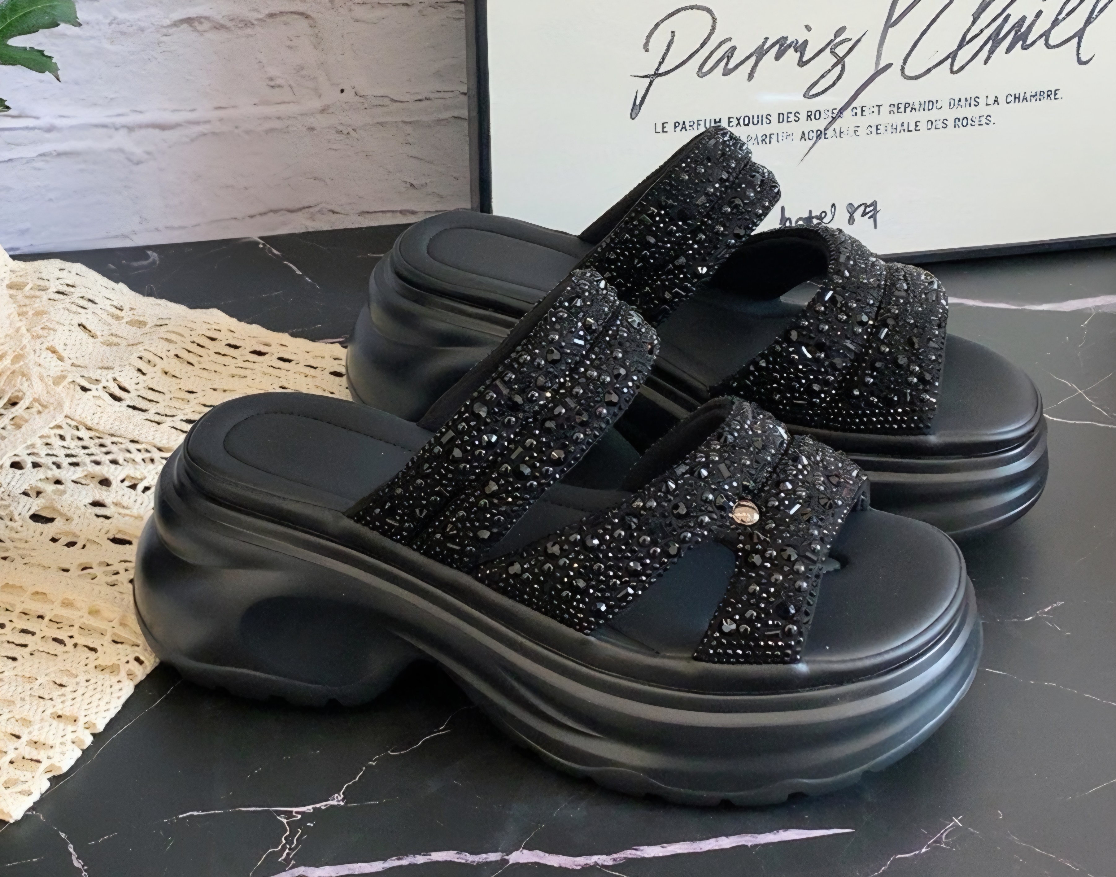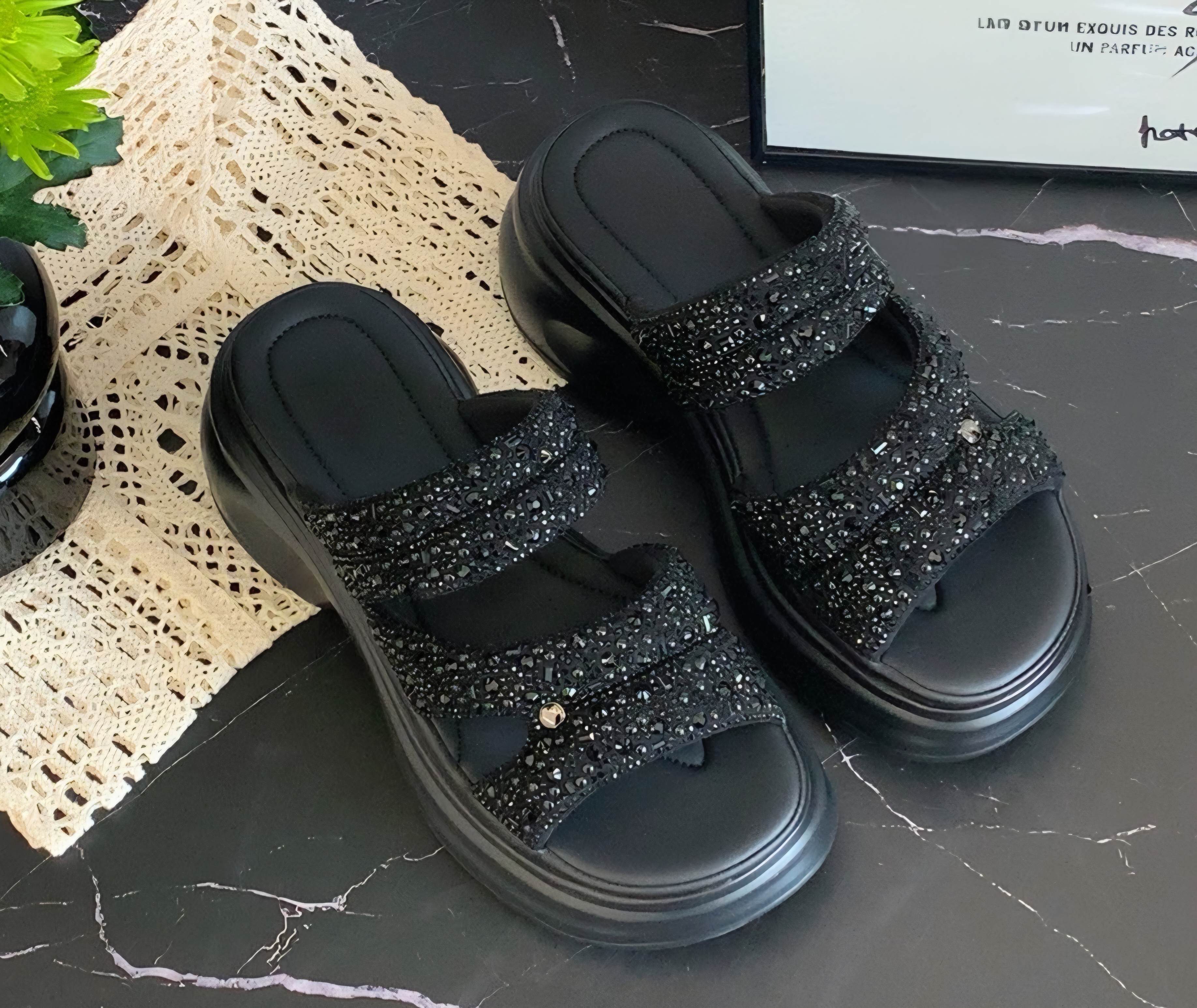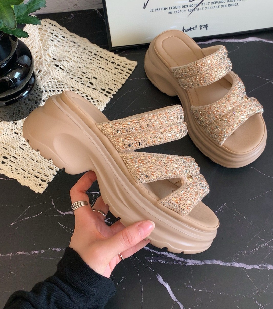 데일리 발편한 통굽 레이스 여성 슬리퍼
