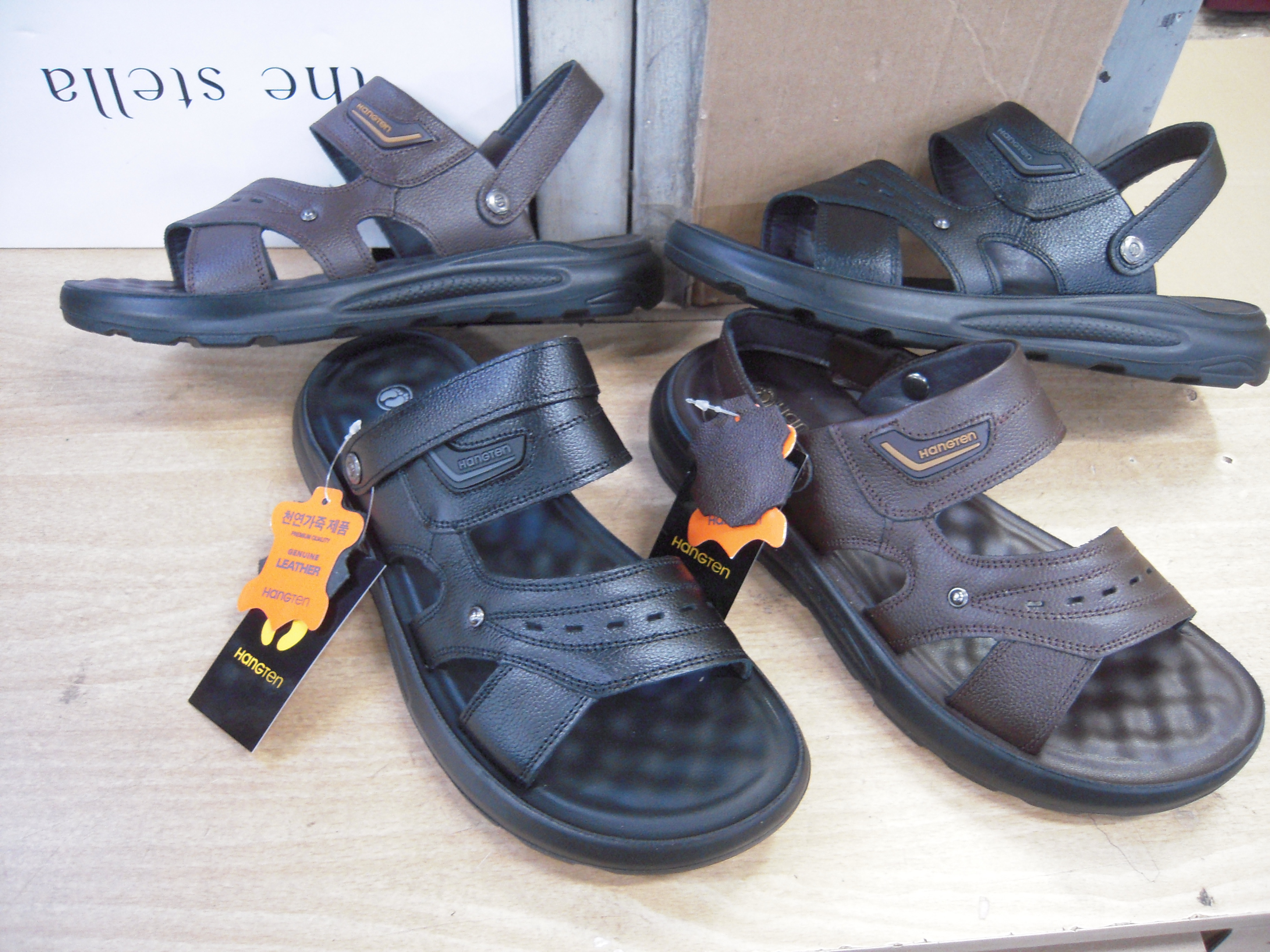 행텐쿠션/가죽샌들(250-280)흑/밤